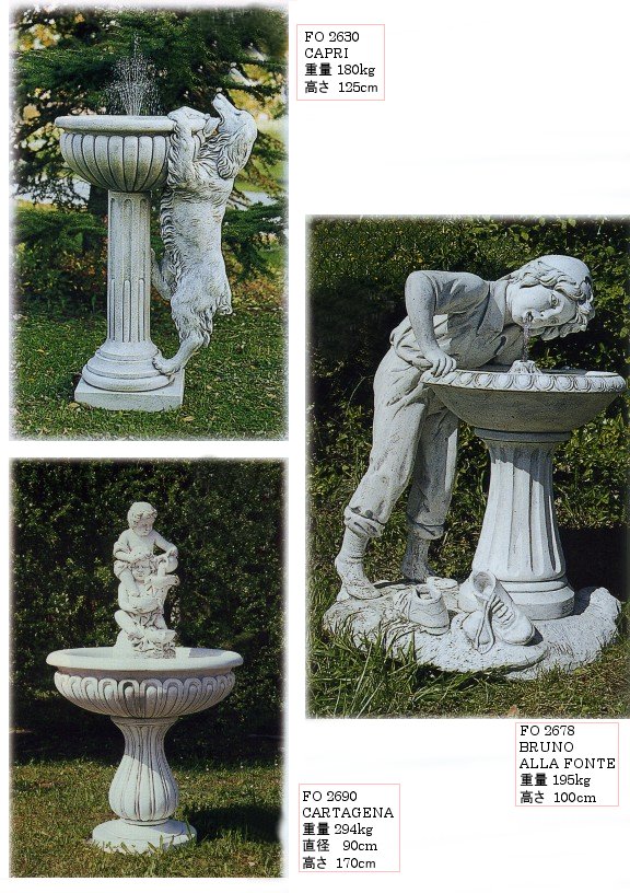 レストラン噴水・公園噴水・ガーデニング噴水・インテリア噴水・壁泉や室内小型噴水から屋外大型噴水etcイタリア製輸入噴水の事は当社にお任せ下さい!